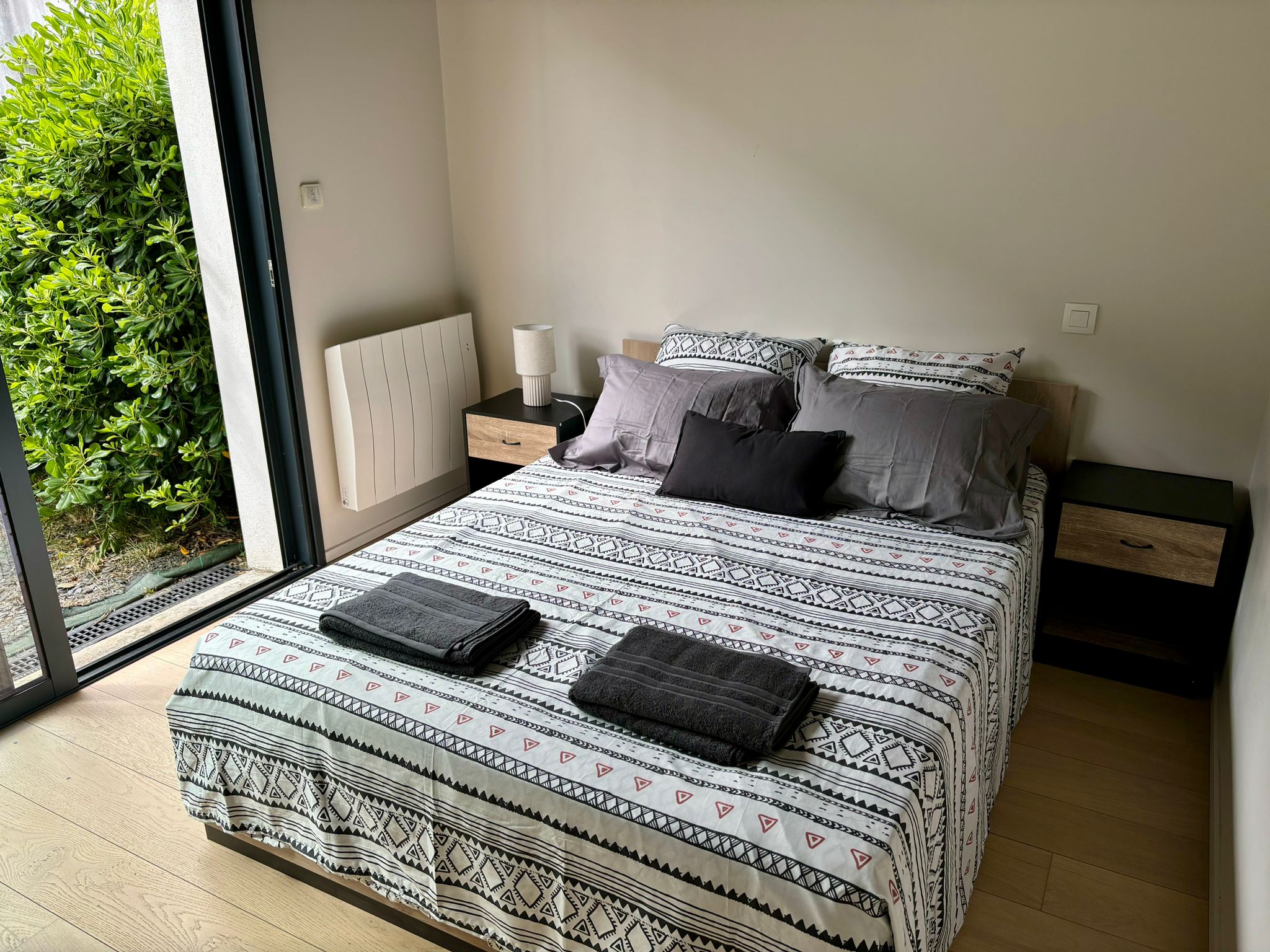 La première chambre est équipée d’un lit double (140×200) avec une armoire, tandis que la seconde chambre offre également un lit double (140×200) et un placard intégré pour vos effets personnels.
